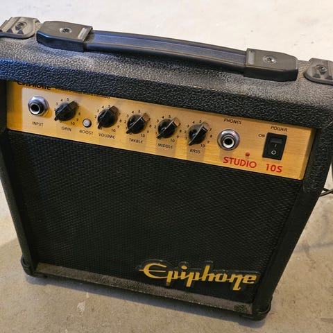 Kustom KAA10 gitarrförstärkare för elgitarr. Kompakt förstärkare med kontroll för gain, voice och volume samt ingång för instrument och uttag för hörlurar. Öppen baksida med inbyggd högtalare. Säljs tillsammans med instrumentkabel med 6,3 mm telekontakter, lämplig för anslutning mellan gitarr och förstärkare.