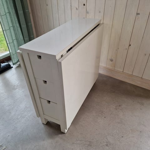 Med båda skivorna nerfällda är bordet lagom för två personer. Toppen om man har liten yta. Med båda sidorna uppfällda är bordet i sin helhet lagom för 6-8 personer.