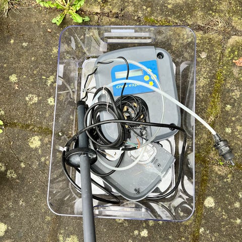 Vi har precis bytt till rening genom saltklorinator och vill därför sälja denna överblivna dunk med klor.