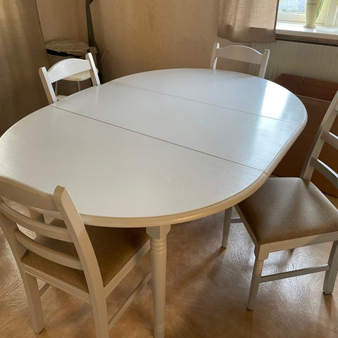 Säljer nu vår matgrupp med det klassiska runda bordet INGATORP från IKEA tillsammans med 4 matchande stolar. En tidlös och praktisk grupp som passar perfekt för både vardag och fest.