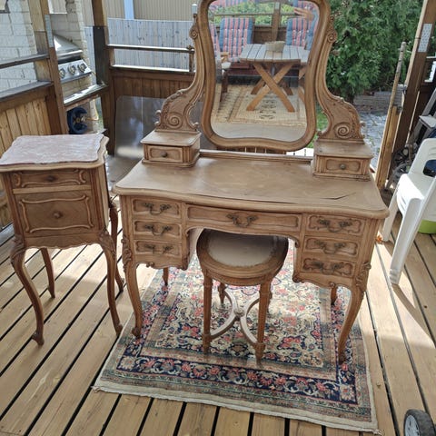 Jätte vackert sminkbord i teak. Passar perfect till sovrum, hallen, vardagsrum eller badrum..