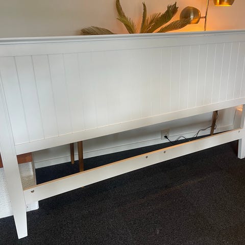 Fristående sänggavel. Bredd 180 cm, höjd 125 cm, tjocklek 12 cm.