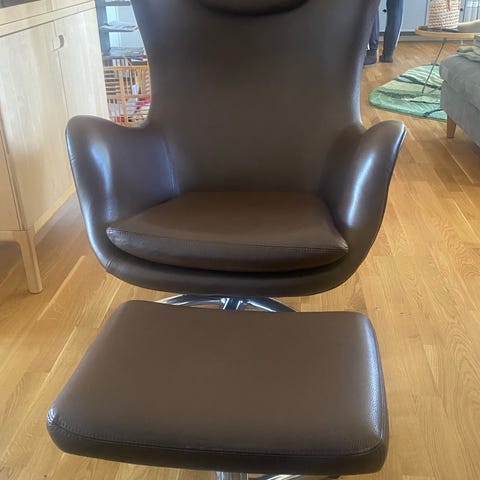 Fåtöljer Conform, 2 fåtöljer med fotpall i mycket bra skick. Grå/ek