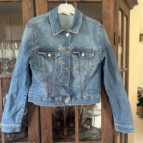 Mjuk jeansjacka med tryckknappar som ny, storlek 134. 100kr