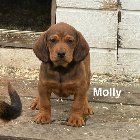Valpen är en hane (den sista i en kull av sju) och växer upp i hemmiljö med god socialisering och är van vid människor och vardagliga situationer samt lämpad för jakt.