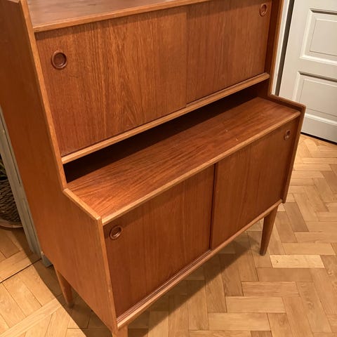 Sideboard/byrå i skandinavisk disgn i teak från mitten av 1900-talet.