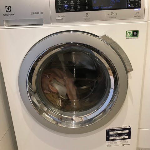 Electrolux frontmatad tvättmaskin i vit färg. Maskinen är av standardtyp med frontlucka i glas och kontrollpanel upptill. Passar för installation i tvättstuga, badrum eller annat utrymme med tillgång till vatten och avlopp. Frontmatade tvättmaskiner är anpassade för vanlig hushållstvätt och kan kombineras med torktumlare eller torkställning beroende på behov. Maskinen ansluts till eluttag, vattenintag och avloppsslang enligt tillverkarens anvisningar.