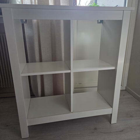 Hylla bortskänkes vid upphämtning. Höjd 162 cm (delad 87 cm och 75 cm). Bredd 75 cm. Djup 42 cm.