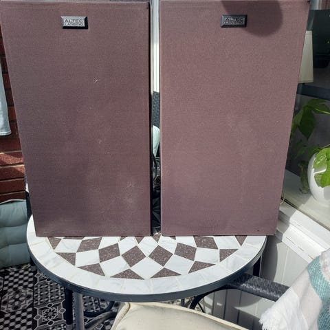 Liten smidig högtalare ett par som kan vägghängas, perfekt i ett hembiosystem.