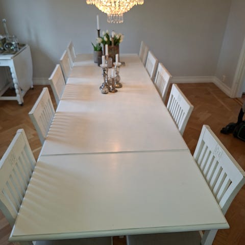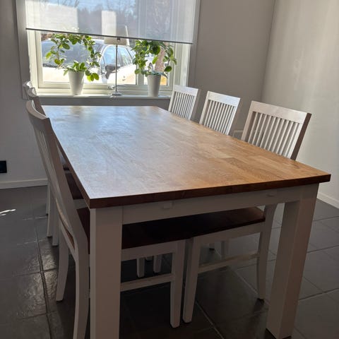 Gediget matbord med sex stolar