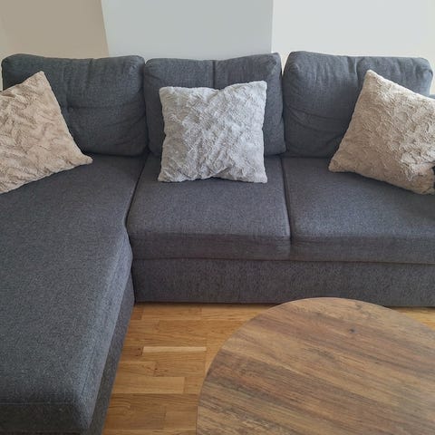 Beige 3-sitssoffa med divan. Divan delen går att lyfta och fungerar som förvaring. 2-sitsdelen fungerar även som bäddsoffa. Soffan är köpt för 4 månader sedan och säljs pga ångerköp.