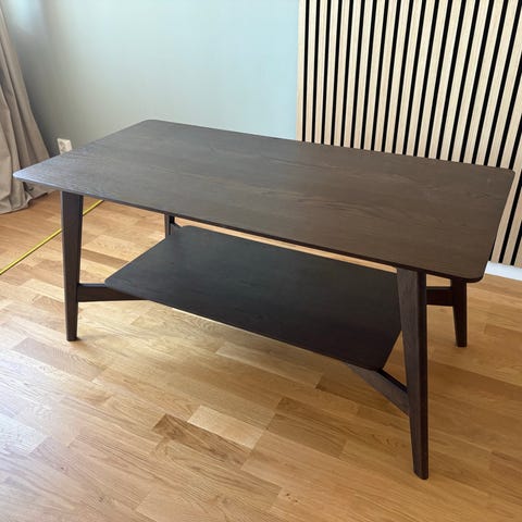 Quadroto Soffbord i mörkbrun ekfaner från Mio. Bordet har måtten 67 cm x 67 cm och är 37 cm högt. Bordet är aldrig använt, endast ihopskruvat.