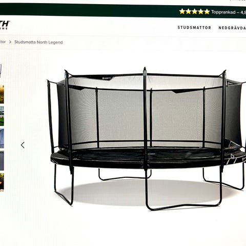 Studsmatta från Rusta 305 cm diameter, med ben i galvaniserat stål, ramdimension 38 mm. 54 galvaniserade fjädrar.