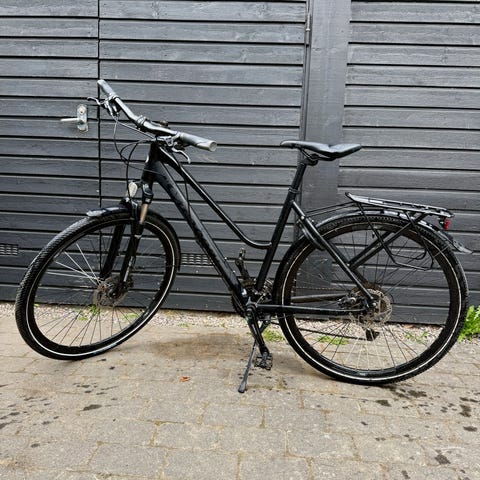 Merida hybridcykel för unisex med ramstorlek 50 cm och 28"/700c-hjul. Cykeln har fram- och bakskärmar, pakethållare bak samt framkorg. Utrustad med växlar och handbromsar fram och bak. Passar för pendling och vardagscykling på både asfalt och lättare grusvägar.