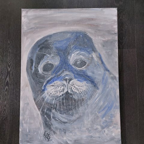 Säl motiv målad med akryl på canvas tavla