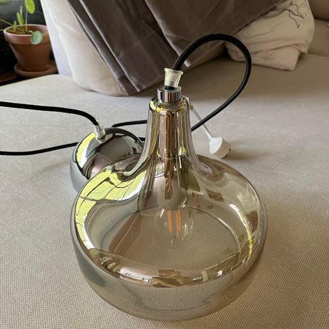 2 st Cobbler Pendel 25 cm i klarglas från Globen Lighting. Knappt använda men ihopkopplade för att kunna monteras med bara ett eluttag.