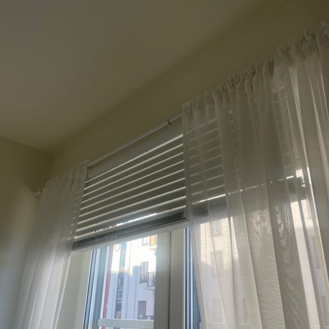 Gardinstången följer med.