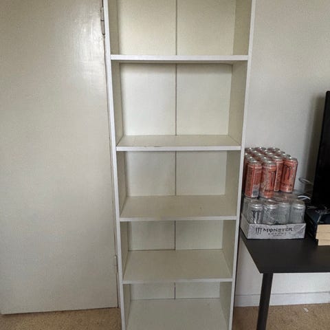 En av bokhyllorna har vi fixat då den va lite ostadig från början. Vi har därför skruvat in egna skruvar så hyllplanet sitter fast, se bilder så förstår ni vad jag menar :)