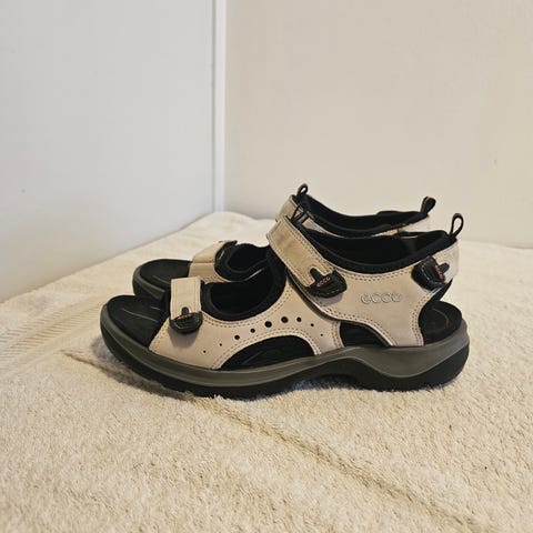Öppna sköna sandaler i svart med justerbara remmar över fot och häl.