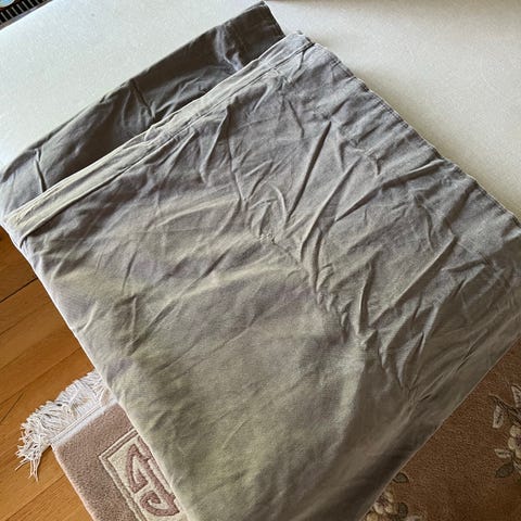 Överkanten är försedd med hällor/fästen för upphängning på gardinstång.
