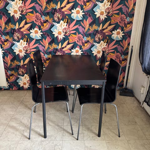 Vitt bord IKEA: Rosentorp, utdragbart 110/155 cm.