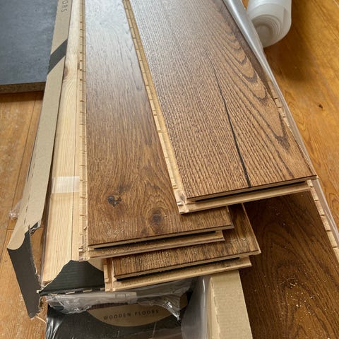 Totalt 10pkt, 18m2. 9pkt är oöppnade. 1,81m2 per pkt.