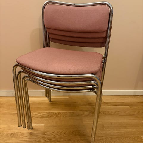 Säljer 8 stolar för 50 kr. styck eller alla för 350kr. Mycket tåliga och sköna att sitta i. Kan behövas lite ny svart färg på handtagen annars inga fel.