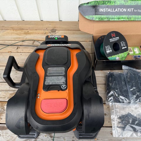 Grouw 1200 (för ytor upp till 1200 kvm) med laddstation. Säljes utan tak och begränsningskabel. Den har använts i två säsonger. Skickas ej! Hämtas i Mora!