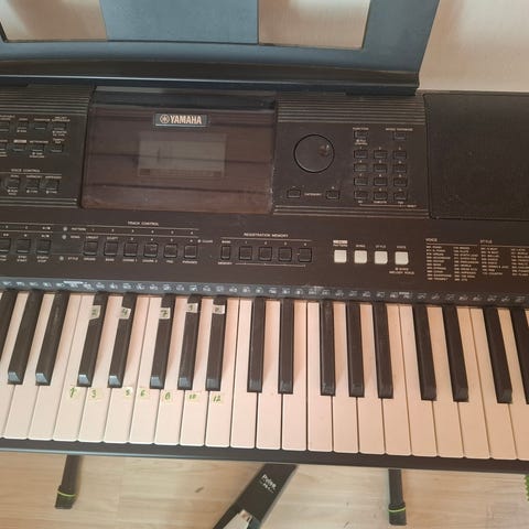 Yamaha PSR-E433 keyboard i svart utförande. Elektroniskt tangentbord med 61 tangenter, inbyggd display och ett flertal knappar för ljud, rytmer och funktioner. Utrustad med högtalare, olika instrumentljud och ackompanjemangsstilar. Passar för övning, heminspelning och spel i hemmamiljö eller replokal. Stativ ingår