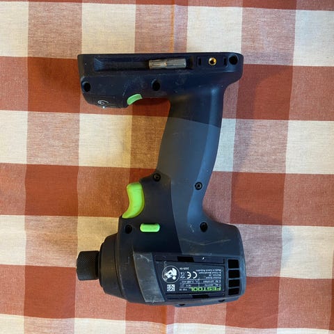 Festool borrskruvdragare med två batterier, laddare och flera borr- och skruvhuvuden. Levereras i original Festool Systainer-förvaringslåda. I lådan ingår även vinkeltillsats, borrchuck, offcenter chuck och snabbchuck.
