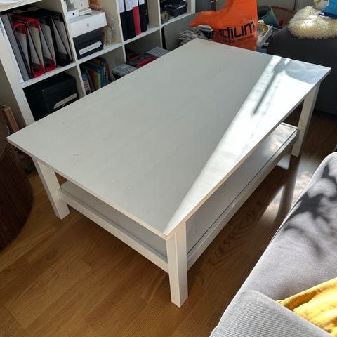 Jag säljer min soffbord. Jag bor i etten och det är stor för mig. Jag köpte från en person på blocket. Det är användbart. Det finns lite repig men svårt att se dem. Bara en av dem kan se och jag delade bilden. Jag kan inte leverera ni måste hämta.