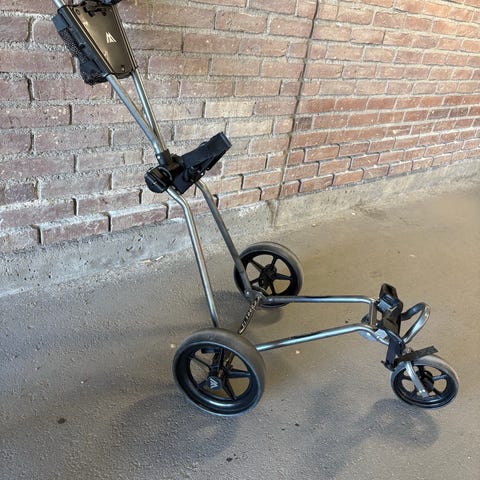 Clicgear golfvagn trehjuling i svart med gula hjul. Vagnen är hopfällbar och har tre hjul för stabilitet och enkel manövrering på golfbanan. Utrustad med handtag och hållare framtill för golfbag samt förvaringsfack vid handtaget. Passar för transport av golfbag och utrustning under rundan.
