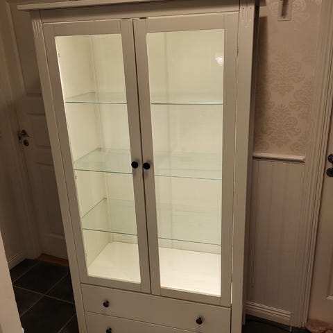 Gediget vitrinskåp H 210, D 40 och L 110. Fint skick. Säljes för 1500kr.