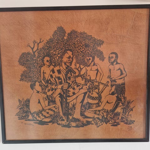 Trärelief tavla med motiv av vallkulla som blåser i horn. Tavlan är utförd i trä med inbränt eller ingraverat motiv i mitten och en ram runt kanten. Passar som väggdekoration i hem med traditionell eller rustik inredningsstil.