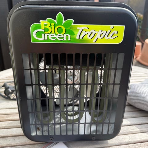 Bio Green Thermo 2 digital termostat för temperaturstyrning av värme- eller kylutrustning. Enheten har digital display, inställningsknappar och integrerat eluttag. Termostaten levereras med givare på kabel för mätning och reglering av temperatur samt nätkabel med stickkontakt. Avsedd för effekt upp till 3000 W enligt förpackningsinformationen. Lämplig för exempelvis växthus, odling eller andra utrymmen där noggrann temperaturkontroll behövs.