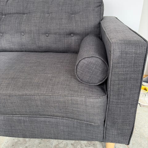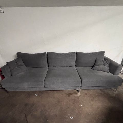 Soffan är väldigt bekväm och har varit mycket uppskattad. Överdrag till samtliga kuddar är avtagbara och går att tvätta i maskin. Dragkedjan till ena sittdynan har lossnat (se bild).