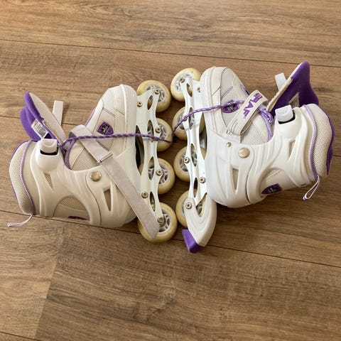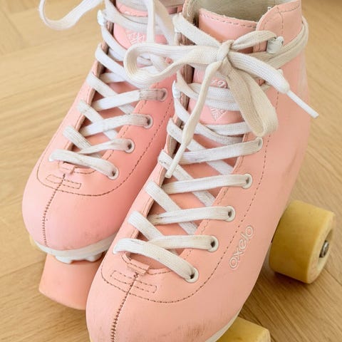 Säljer ett par jättefina rosa rullskridskor av märket Oxelo i storlek 39. Det är klassiska "quad"-skridskor med fyra hjul som passar perfekt för både nybörjare och de som vill rulla stilfullt på gatorna eller i skateparken.