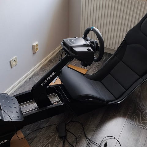 Komplett Playseat med ratt och pedaler säljes för 1700. Stolen är av "högsta kvalitet".
