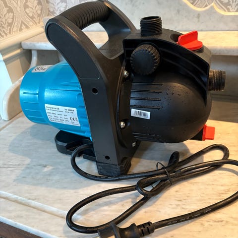 Gardena trädgårdspump i blått och svart utförande. Elansluten pump lämplig för bevattning och vattenförsörjning i trädgård, till exempel för att pumpa vatten från regntunna, brunn eller cistern. Utrustad med anslutningar för slang samt handtag för enklare förflyttning.