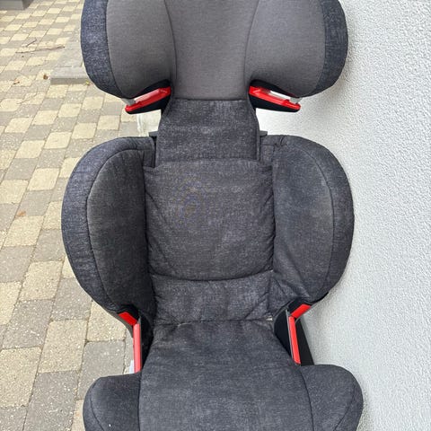 Maxi-Cosi RodiFix bilbarnstol upp till 36 kg. Bilbarnstolen är utformad som en bälteskudde med ryggstöd och sidokrockskydd. Klädseln är i mörk, svart tonat tyg. Sätet används tillsammans med bilens trepunktsbälte eller med isofix.