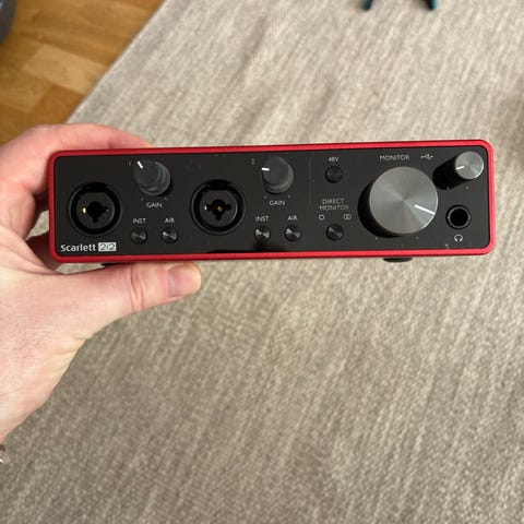 ESI MoCo monitorcontroller i svart/röd design. Passiv volymkontroll för studiomonitorer med stor ratt på ovansidan för smidig nivåjustering. Enheten har flera in- och utgångar på baksidan, inklusive XLR, TRS och RCA, vilket gör det möjligt att ansluta olika ljudkällor och högtalarpar. Lämplig för användning i hemmastudio eller mindre inspelningsmiljöer där man vill styra volym och växla mellan olika monitorer.