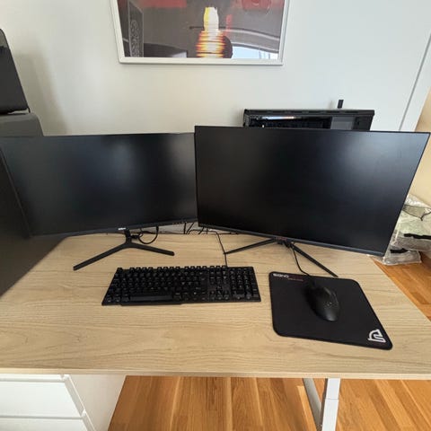 Skärmarna har fristående bordsstativ och anslutningskabel syns på bilderna. Passar för användning för gaming, stationär dator eller som extra skärm till laptop.