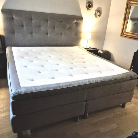 Viking säng 160 cm med mörkgrå klädsel säljes för 5000:-. En soft och en medium säng. Bäddmadrass något solkig men ej trasig. Gavel ingår. Nattygsbord ingår om så önskas.