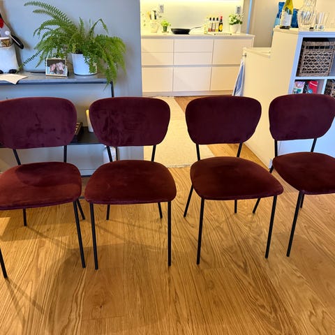 Säljer 4 st snygga matstolar i grå sammet/velour med svarta ben.