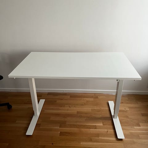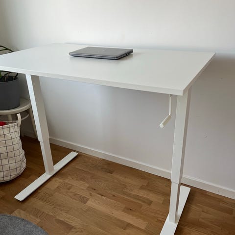 Höj- och sänkbart skrivbord TROTTEN från IKEA. Nyskick vit med mått 120x70 cm och höjd mellan 72-122 cm.