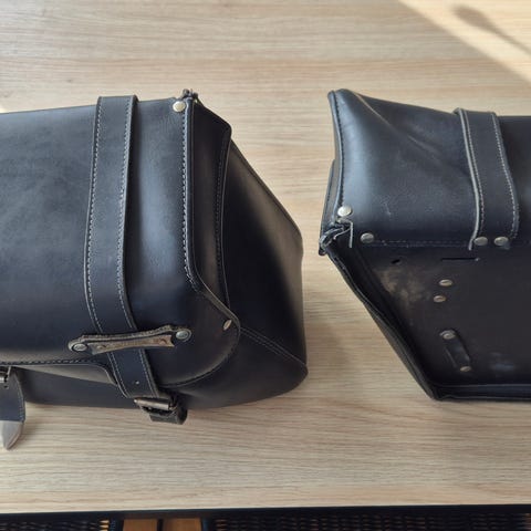 Säljer svart MC‑väska (“postväska”).