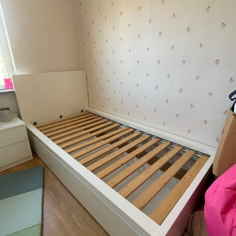 IKEA UTÅKER sängstomme med ribbotten och madrasser trä vit