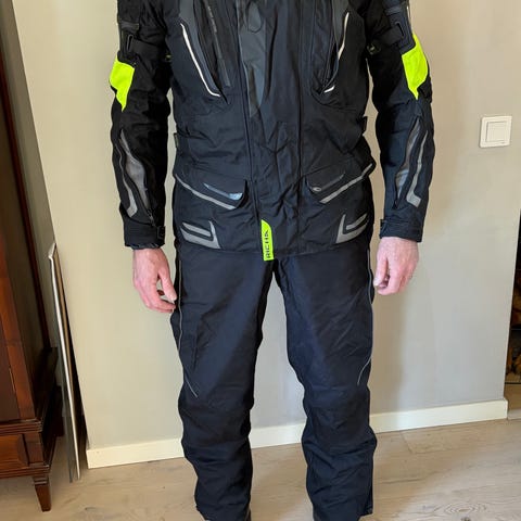 Scott motorsport mc-ställ i tvådelad modell med jacka och byxor. Färgkombination svart och neongul med reflexdetaljer. Jackan har flera ytterfickor, justerbara midjeremmar och hög krage. Byxorna har dragkedjor och fickor framtill samt förstärkta partier vid knän. Innerfoder i mesh för bättre ventilation. Lämpligt som skyddande ytterplagg vid motorcykelkörning. Foder ingår till både jackan och byxorna.