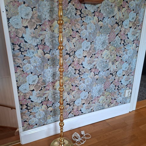 Golvlampa mässing/valnöt