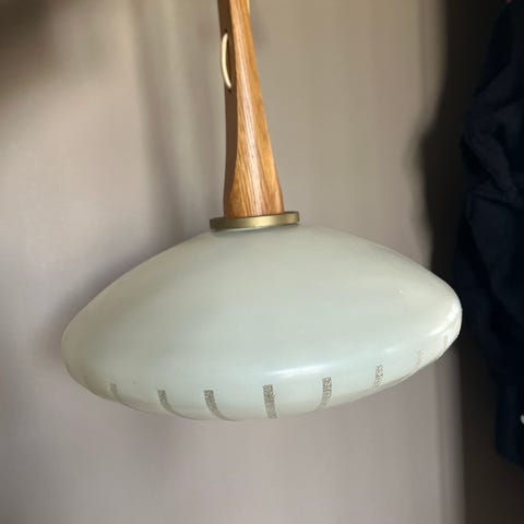Mycket fin lampa retro vintage i glas och teak